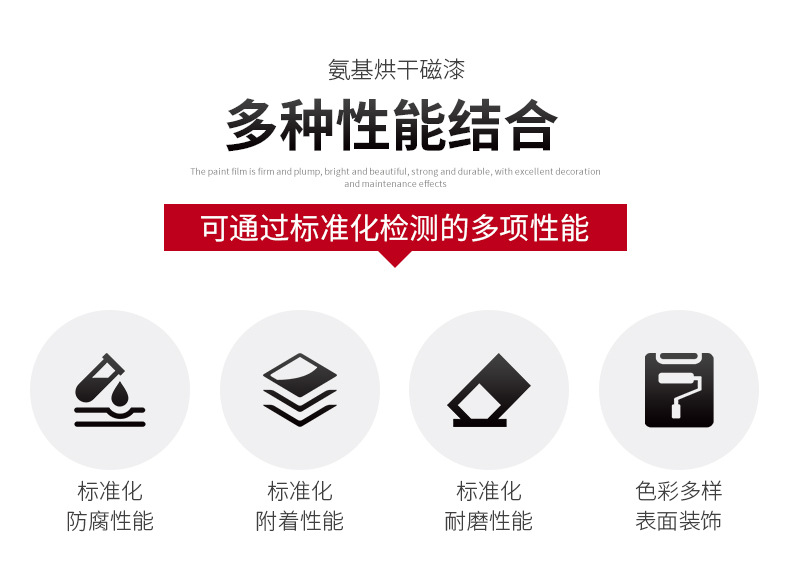 標準化機械性能:氨基烘干漆具有標準化機械性能、附著力、耐沖擊力、柔韌性均達到檢測標準;