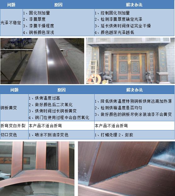 銅作為建筑裝飾領(lǐng)域的“貴金屬”,常被用于藝術(shù)雕塑、仿古建筑、別墅大門、高檔住宅等領(lǐng)域。因銅基材表面光滑、延展性好、導(dǎo)熱系數(shù)高、易腐蝕等特點,其在戶外使用時需涂裝具有較強耐候性、耐腐蝕性、耐冷熱循環(huán)及較高附著力的氟碳涂層進(jìn)行防護,以免生銹腐蝕降低建筑物的使用壽命。