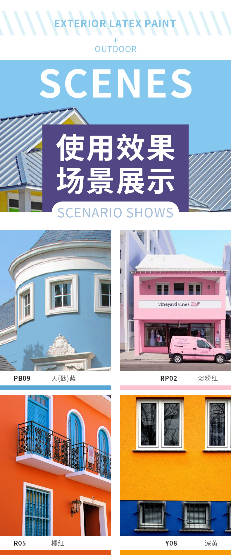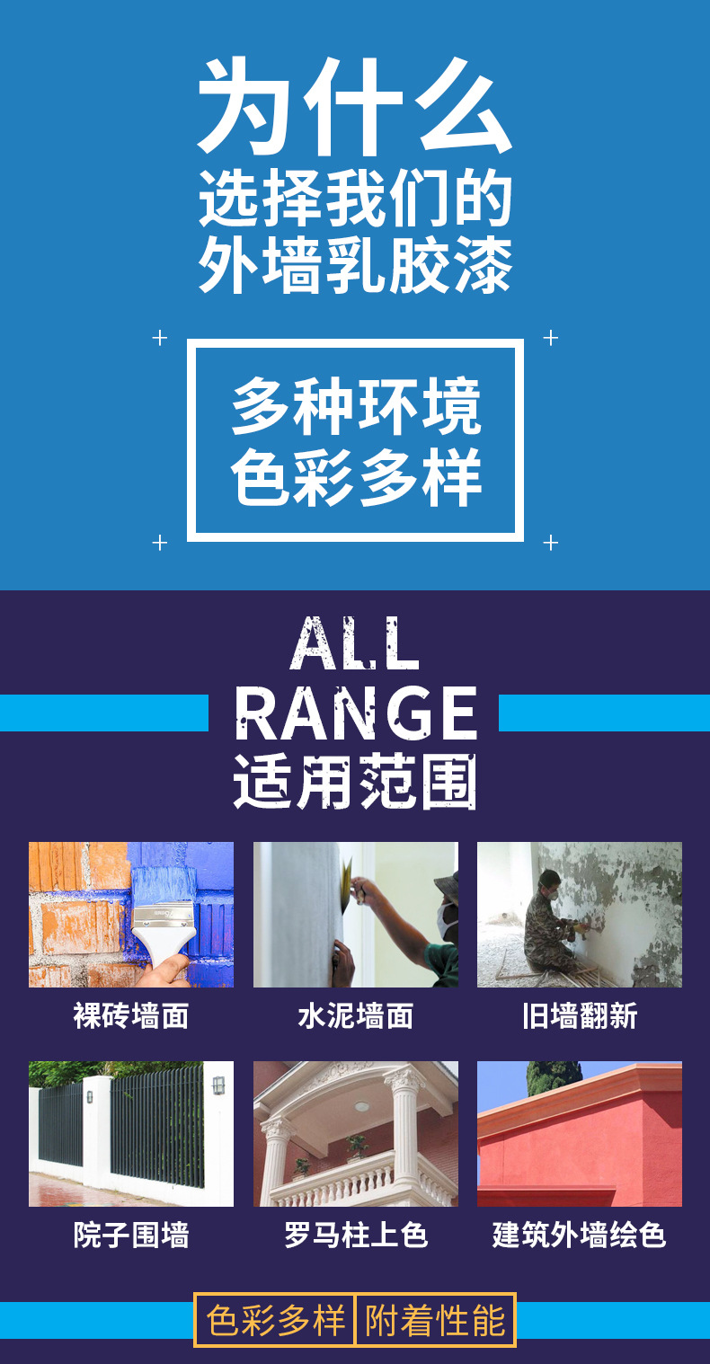 適用于裸磚墻面、水泥墻面、舊墻翻新、院子圍墻、羅馬柱上色、建筑外墻繪色
