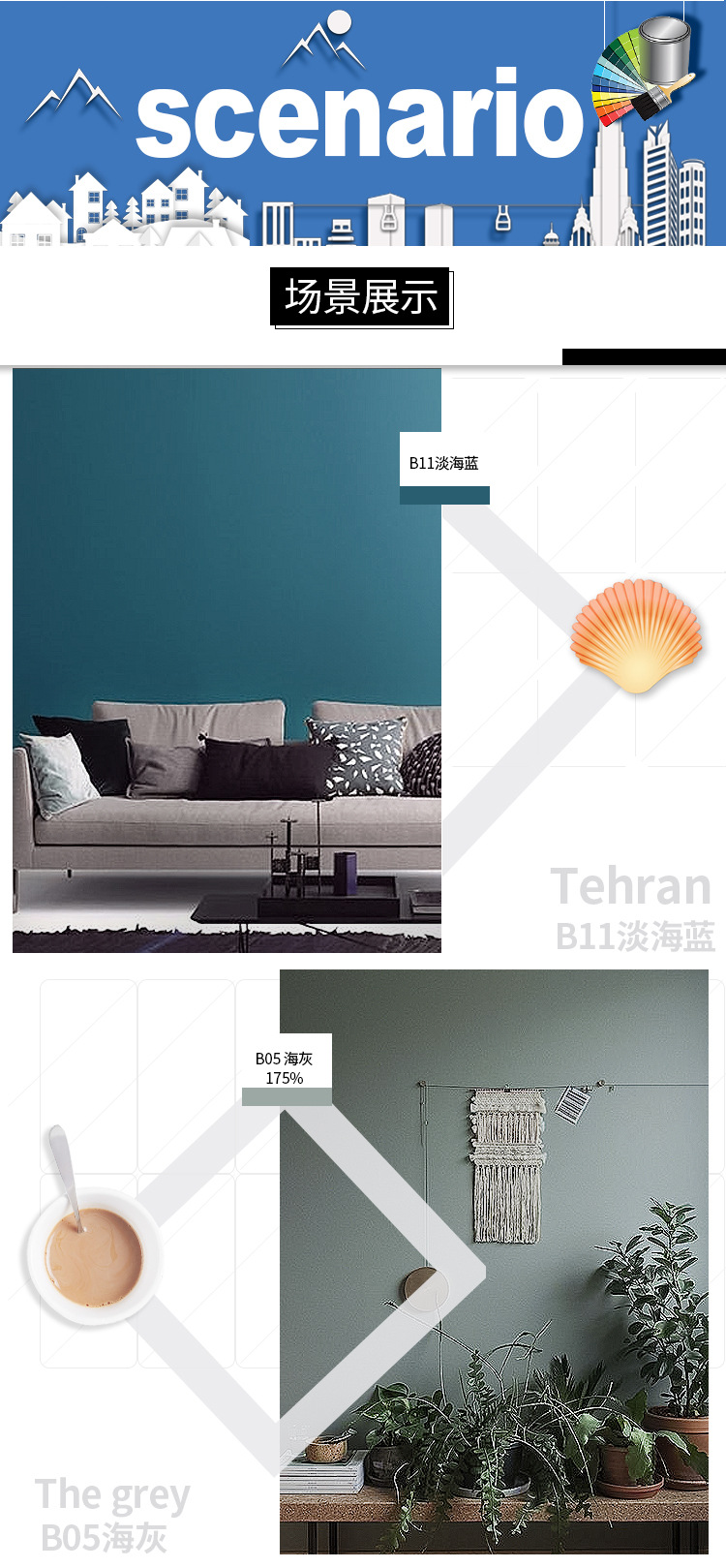 色彩靚麗:漆膜致密、保光保色讓墻面更加清新靚麗,煥然—新;