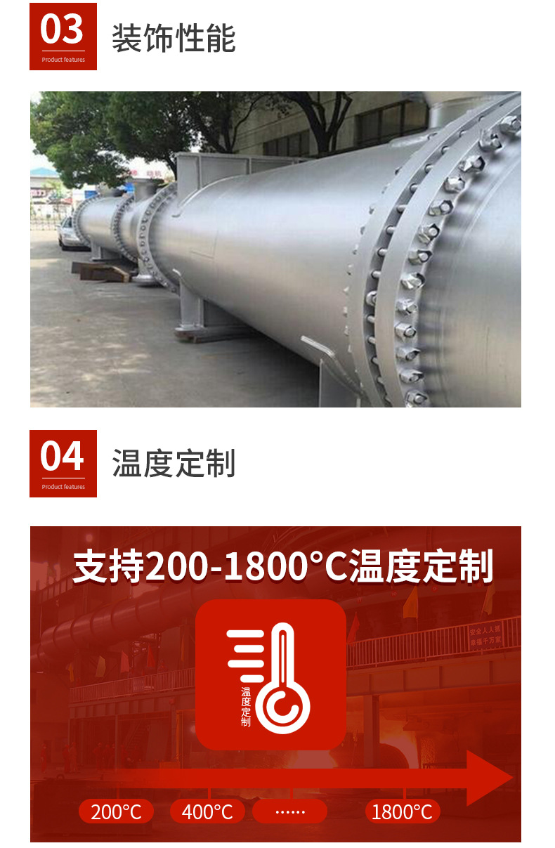 標(biāo)準(zhǔn)化的耐高溫性能:可通過標(biāo)準(zhǔn)化檢測(cè)的耐熱性、高氧化性,可長期耐200°C-1800°C高溫;
