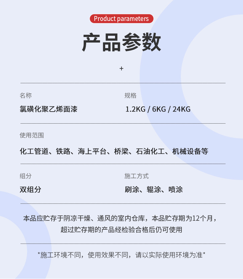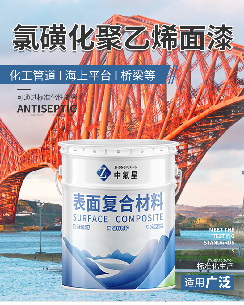 【中氟星】氯磺化聚乙烯面漆由氯磺化聚乙烯橡膠、改性樹(shù)脂、顏料、助劑及溶劑等組成。