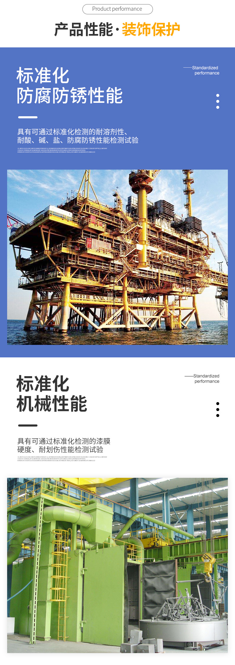 標(biāo)準(zhǔn)化防腐防銹:具有可通過(guò)標(biāo)準(zhǔn)化檢測(cè)的耐化工大氣腐蝕性、耐水、耐酸、耐堿、耐鹽、良好的化學(xué)穩(wěn)定性;
