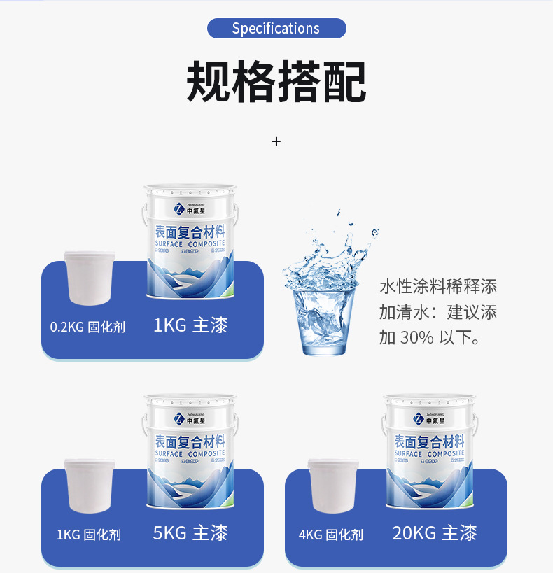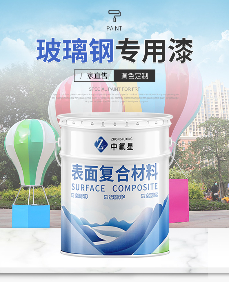 【中氟星】玻璃鋼專用漆為雙組份,常溫自干,亦可低溫快速烘干,可用于玻璃鋼產(chǎn)品表面的涂裝,涂覆在物件表面形成一層保護(hù)膜,能夠阻止、延遲化學(xué)破壞現(xiàn)象的發(fā)生和發(fā)展,起裝飾保護(hù)作用。